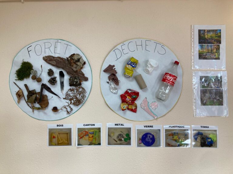 Nous avons commencé par trier ce qui appartenait à la forêt et ce qui n’y appartenait pas donc les déchets. Ensuite, nous avons pris les…