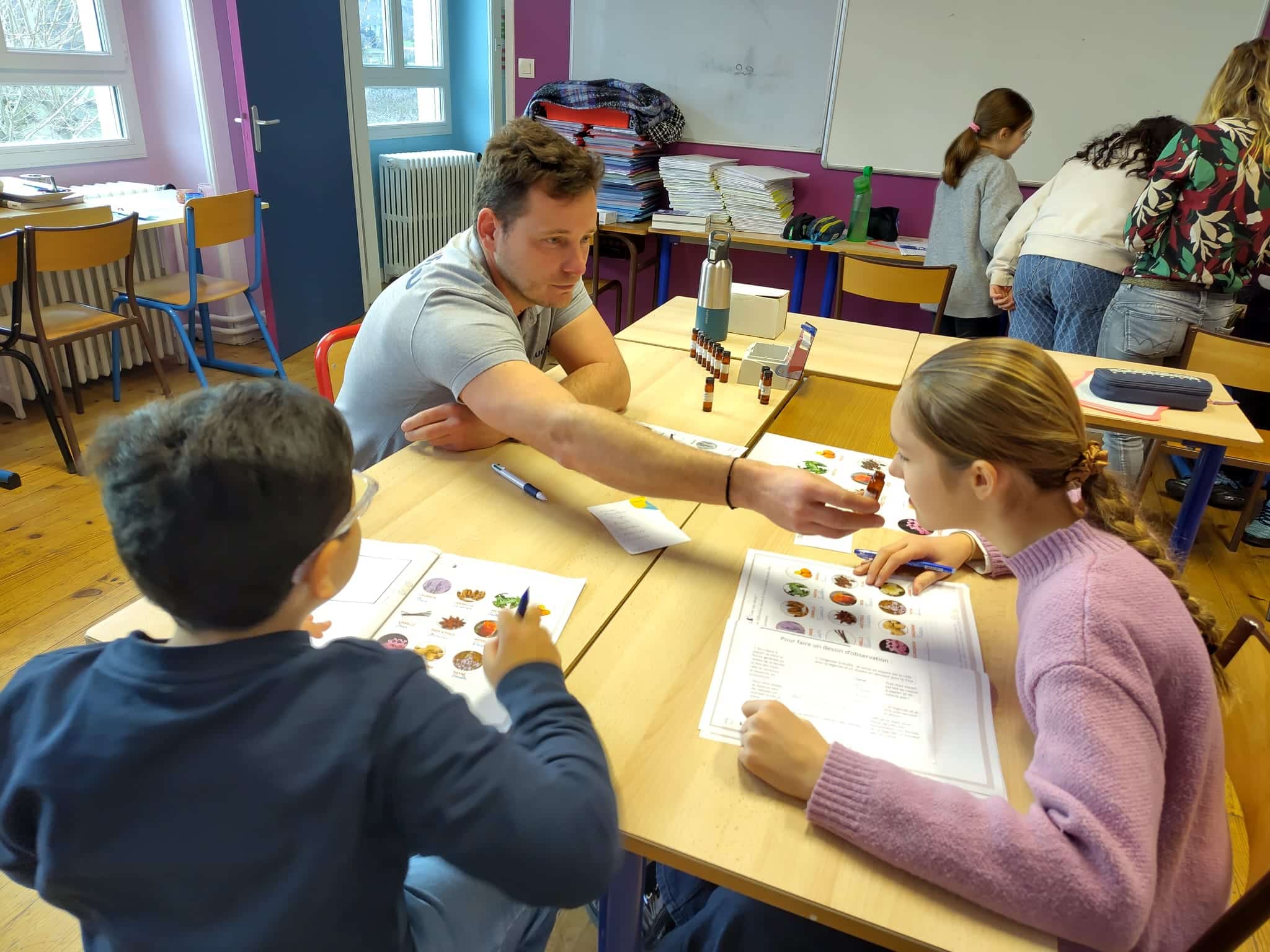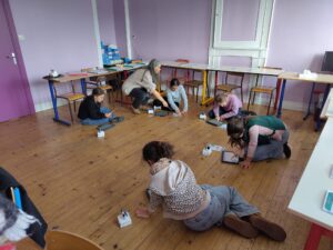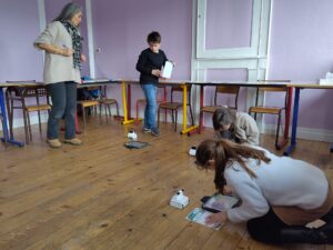 Nous retrouverons Camille le 27 mars, lors de cette journée elle viendra nous aider à graver nos dessins de planctons sur des Tétra Pak (briques de lait ou de jus que nous avons récupérées), que nous enduirons ensuite d’encre avant de passer nos matrices sous presse pour imprimer nos estampes et les envoyer au bord du navire de l’expédition Tara Polaris !