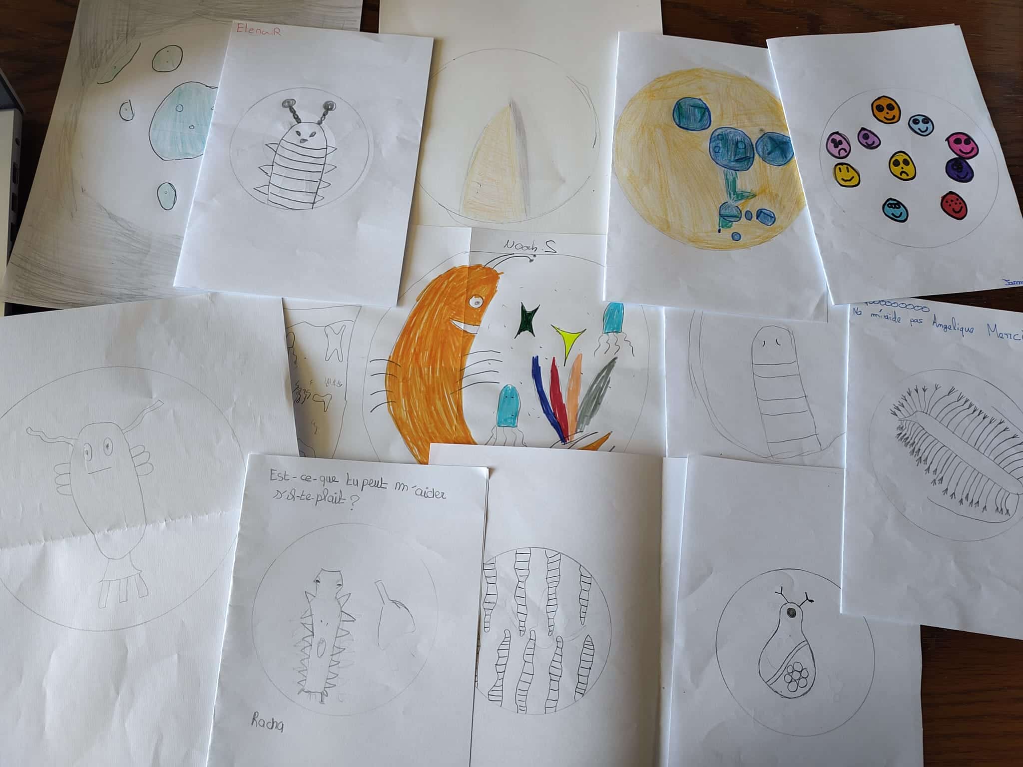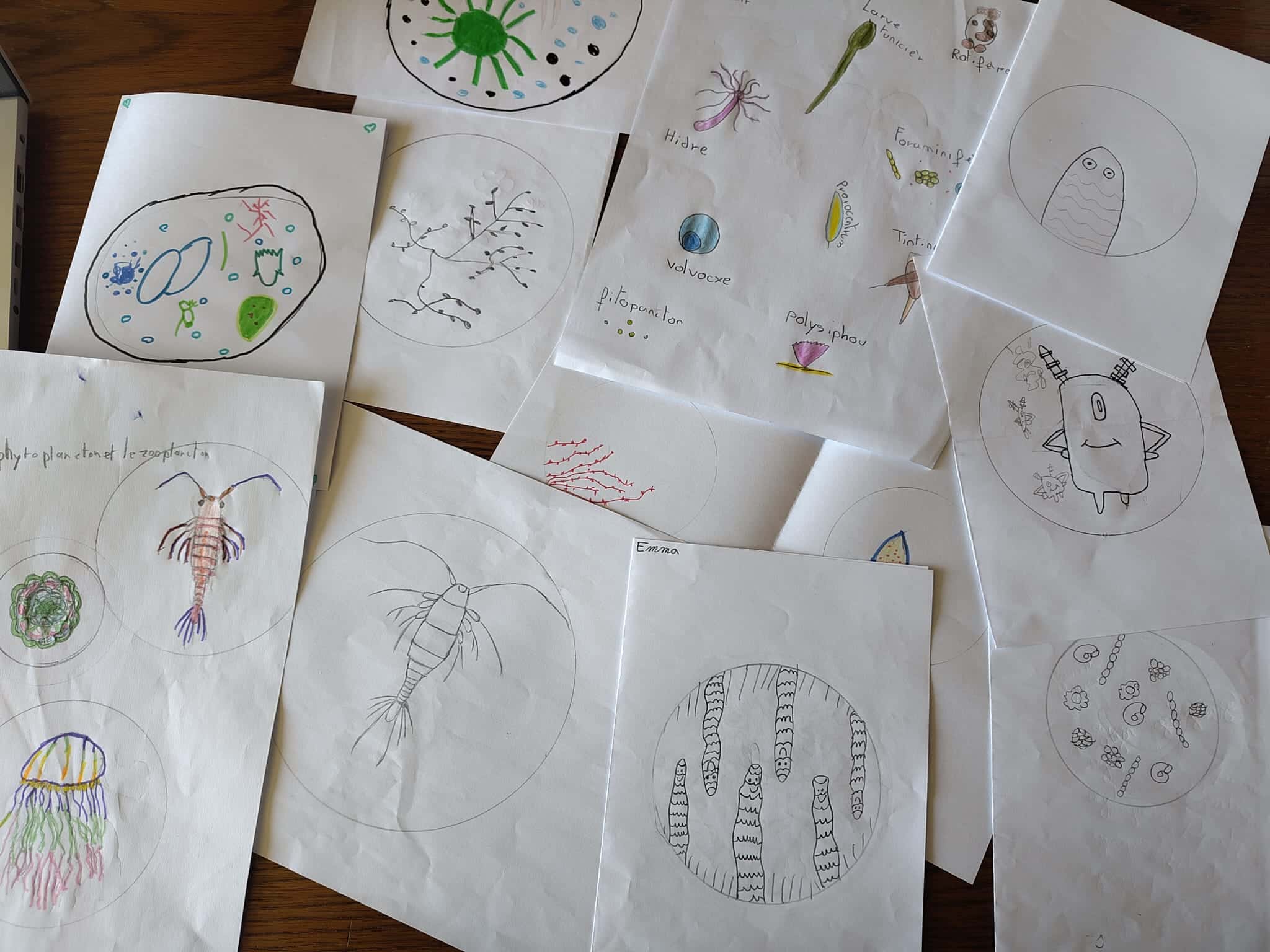 Durant ce mois de mars, les CM2 ont laissé place à leur inspiration en griffonnant quelques dessins de planctons que voici :