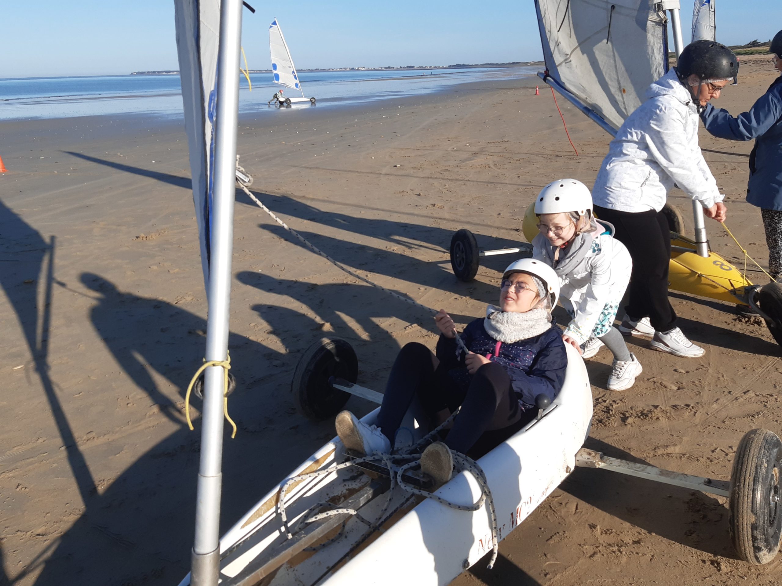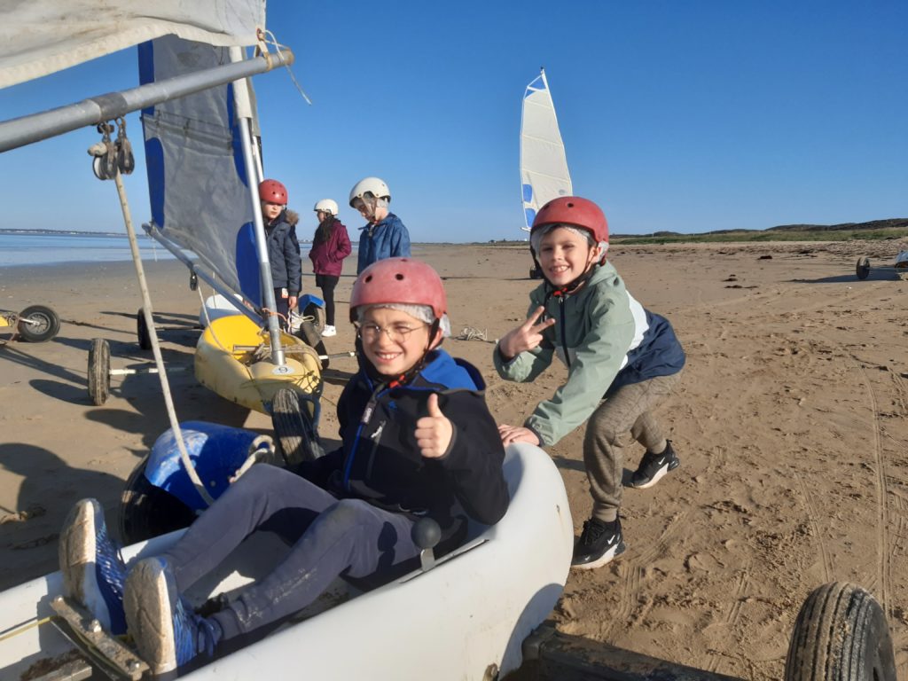 Ce matin, le deuxième groupe a pris la direction de la plage pour faire du char à voile. Le soleil était au rendez-vous, le vent un peu moins…