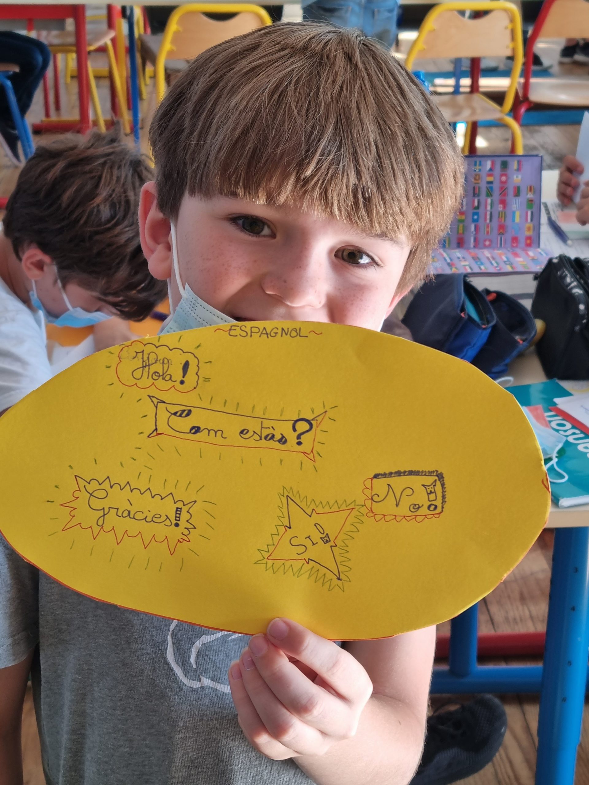 « J’ai bien aimé cette journée. J’ai appris les nombres en Italien, en espagnol, en turc, en anglais. Ce qui m’a intéressé, ce sont les différentes lettres de chaque langue, le latin, le grec, le cyrillique, l’arménien et le turc . Ce qui m’a fait rire ce sont les différentes phrases que l’on écoutait et il fallait reconnaître de quelle langue il s’agissait: j’ai reconnu l’anglais, l’allemand ,le japonais, l’arménien et l’espagnol. J’ai réalisé le drapeau allemand et fait une speech bubble en suédois. J’ai appris que le mot TROLL était norvégien, que le SILBO est une langue très ancienne et qui est encore enseignée. « MEHDI