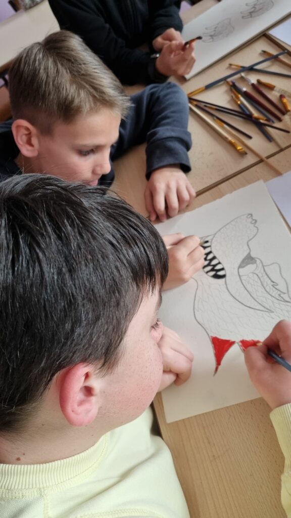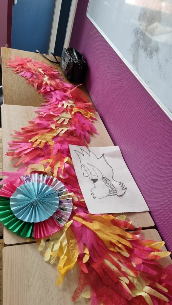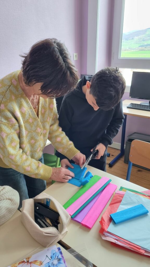 En présence de Lylou et Mme Odion, les élèves découpent, dessinent, peignent et s’amusent.