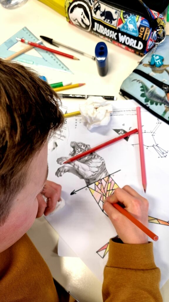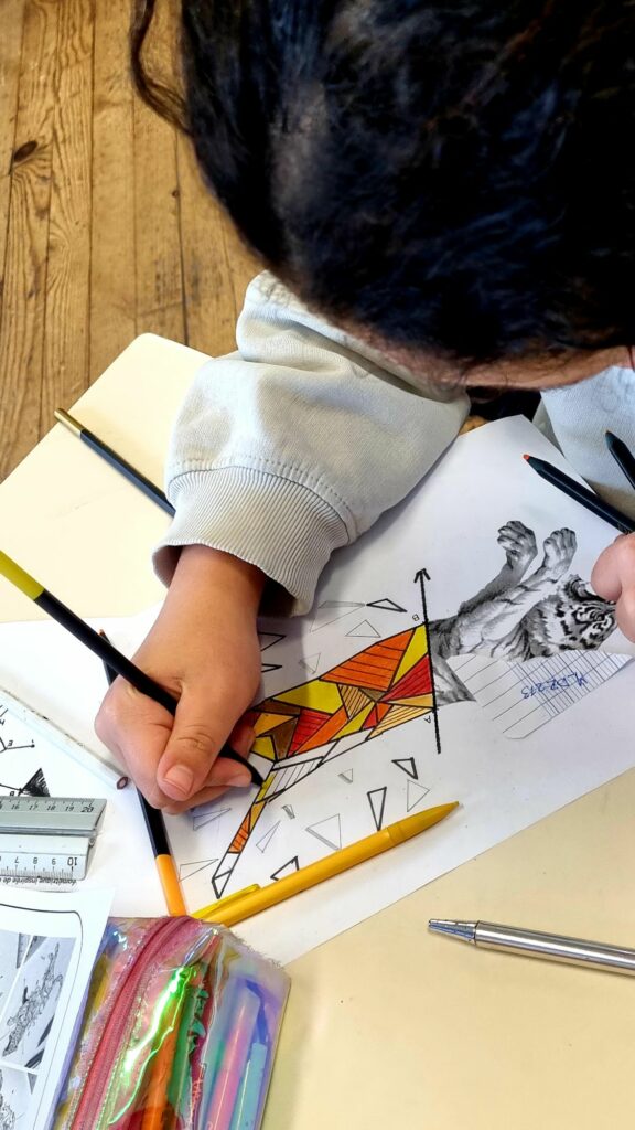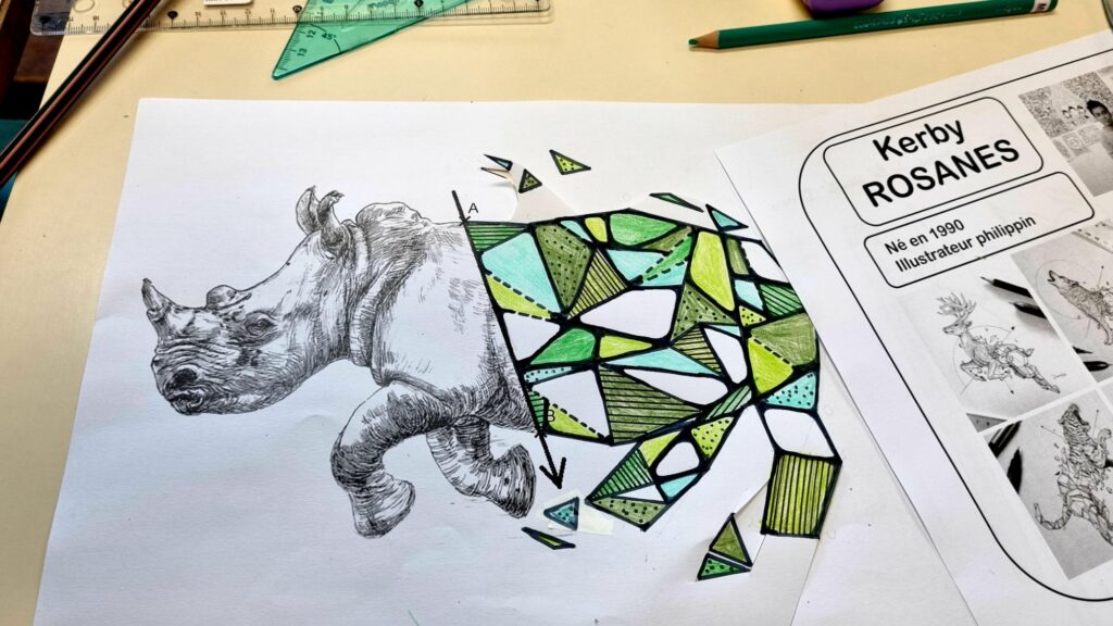 En s’inspirant de l’artiste philippin KERBY ROSANES et de sa série GEOMETRIC BEASTS, les élèves ont allié art et géométrie.