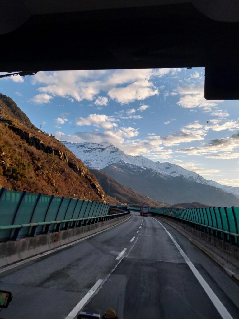 Minuit: mauvaise surprise. Le tunnel de Orelle est fermé pour travaux. Notre car est immobilisé jusqu’à 5h du matin.