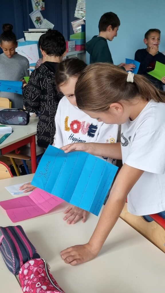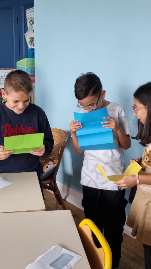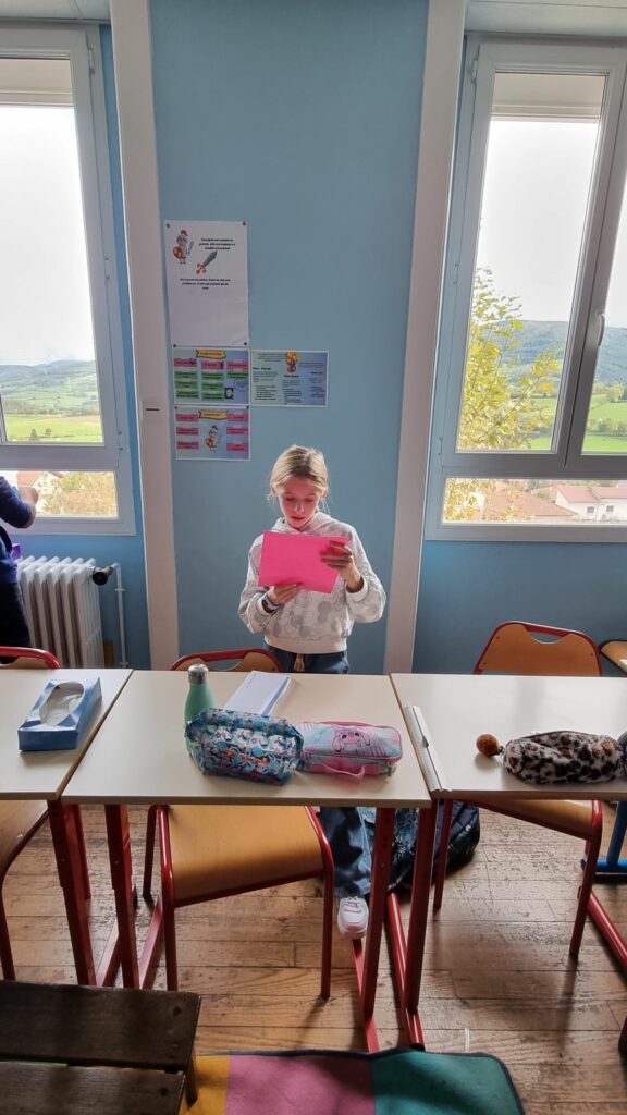 Chaque élève a écrit une lettre en anglais pour se présenter. Ce fut une formidable occasion de réinvestir toutes les notions que nous travaillons en classe.