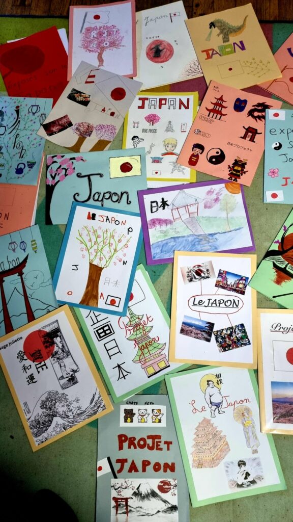 En classe, pour faire suite à notre visite de l’exposition JAPON PASSION, chaque élève a choisi un sujet qu’il souhaitait approfondir.