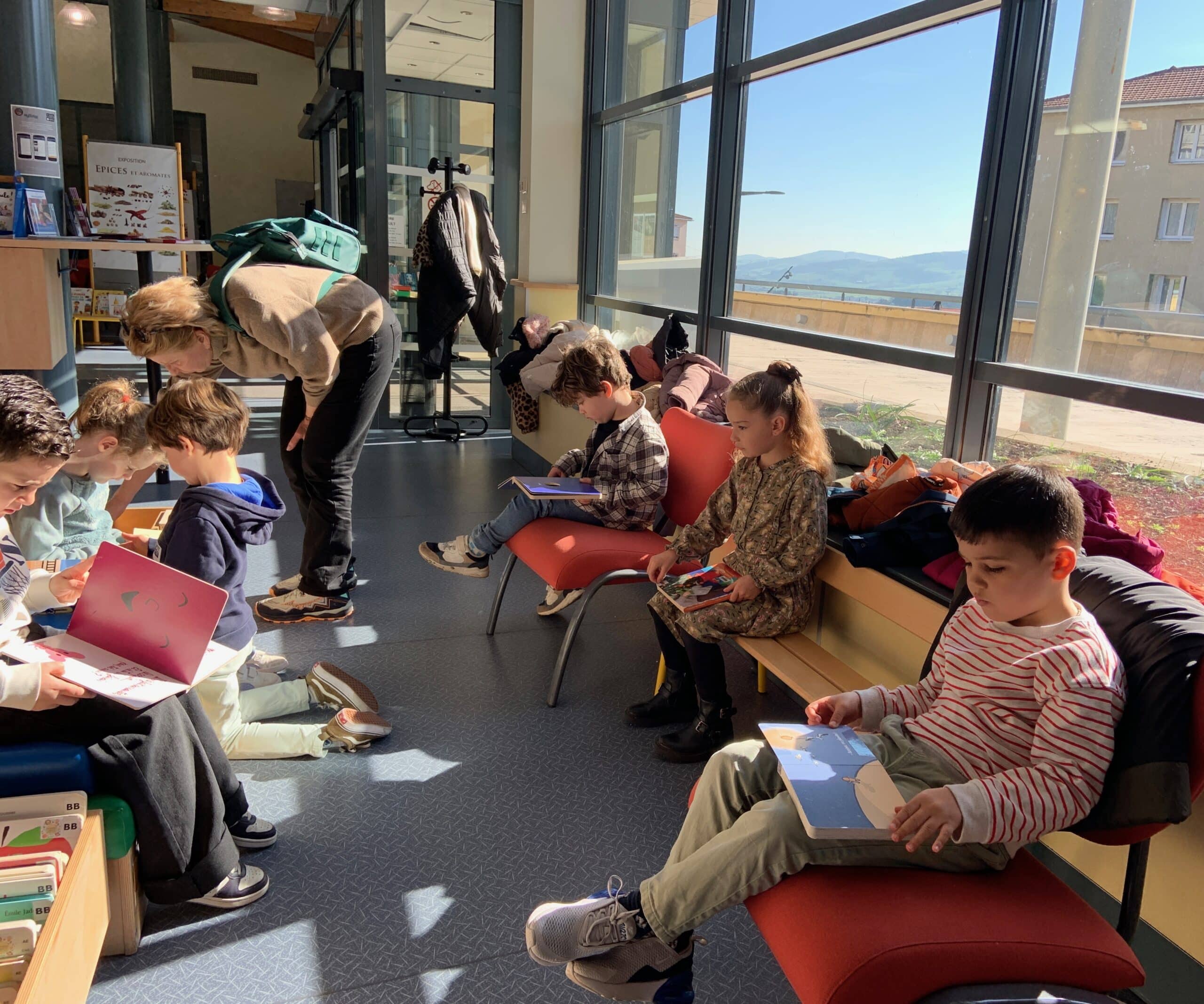 Les élèves ont été accueillis par Guylène pour une séance d’animation autour du conte « rirélire » ( 5 livres ont été lus) afin de favoriser l’accès à la lecture dès le plus jeune âge. Les enfants ont ensuite pu prendre un moment pour lire ce qu’ils avaient envie.
